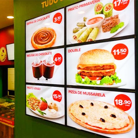 Especialmente projetado para fins de publicidade ao ar livre e ou em áreas internas. Locais como Drive thru, aeroportos, rodoviária, restaurantes, lojas, shoppings e outros.